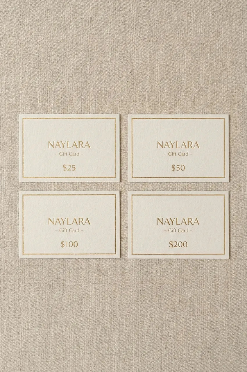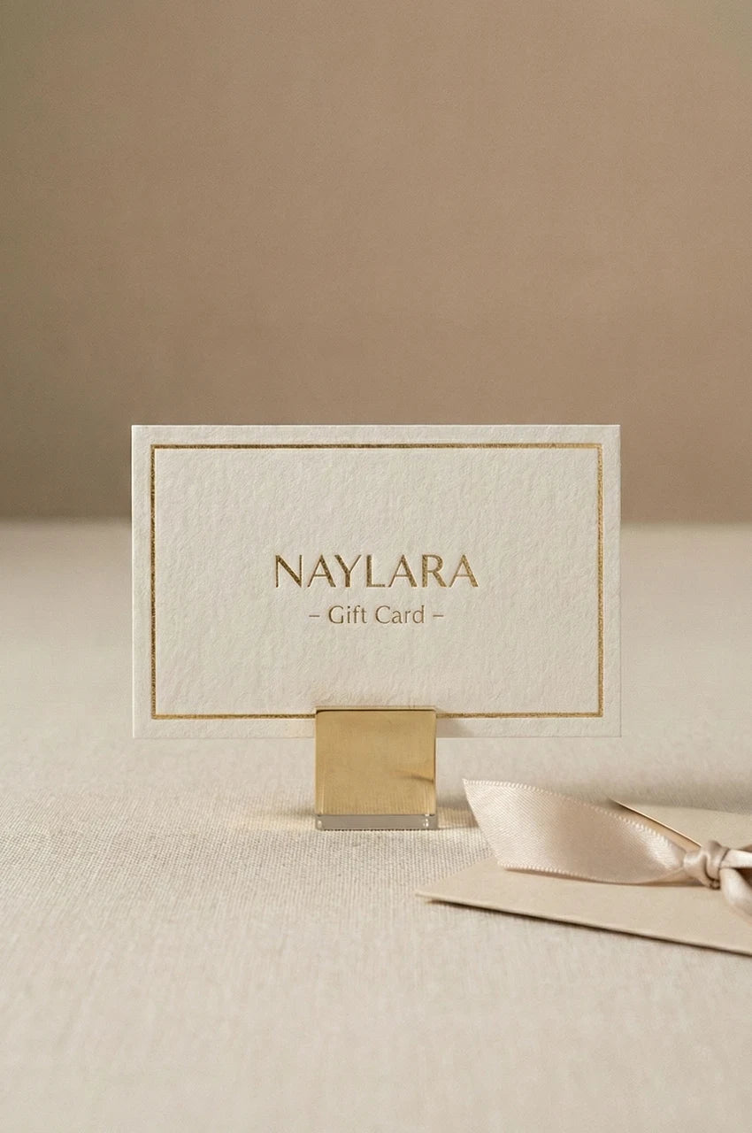 Treat someone special to the world of Naylara. Our digital gift cards are the perfect way to share the beauty of our handcrafted kaftans and curated accessories. Whether they are looking for a statement piece for a special occasion or a touch of everyday luxury, a Naylara gift card offers the ultimate gift: the freedom to choose.